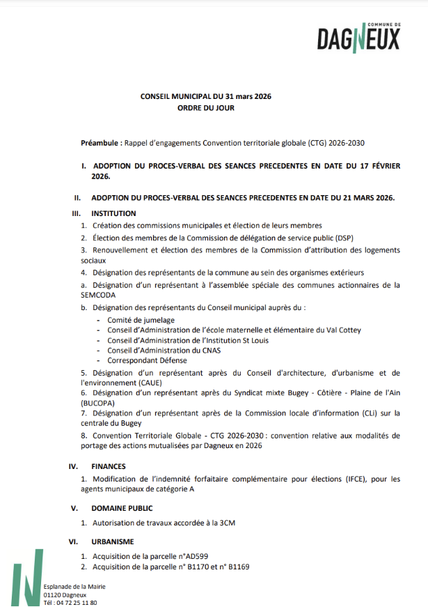Convocation de l'installation du conseil municipal - samedi 21 mars 2026